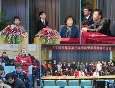 为传承优良传统,宣传优秀事迹,树立工学榜样,工学院于11月23日至26日分专业举行了5场评优表彰暨学习经验交流会。学院领导、各专业负责老师、教研室主任以及2009级新生参加了本次大会。本次评优表彰活动将评优表彰和学习经验交流集于一体,以高年级优秀学生为表彰对象,以2009级新生为宣传教育主体,是工学院学生工作中的一项新的探索。学院希望通过这种新的尝试,更好地激励学生努力学习,奋勇争先,形成的良好校风、学风和班风。