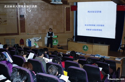 随着我校的发展,教学和科研使用纯水量增多,老师和学生在实验过程中遇到了诸多问题。针对这种情况,12月4日下午林木育种国家工程实验室和实验室与设备管理处联合举办了一期纯水知识讲座,本次讲座邀请了美国密理博公司技术应用专家路峰,共有校内外80位老师和学生参加。从什么是纯水、纯水的分类到纯水的产生原理再到纯水影响实验的原因以及纯水在细胞培养中的应用,技术应用专家路峰做了生动的讲解。会后有的学生表示,终于明白原来实验数据一直不准的原因,原来是平时经常使用的纯水作怪,缺乏使用纯水的知识。