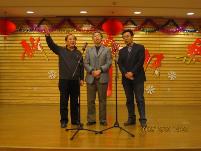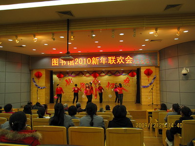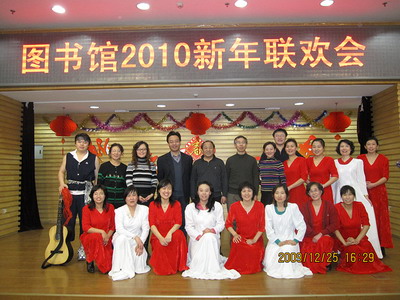 2009年12月25日下午2:30,图书馆五层报告厅内喜气洋洋,图书馆2010职工新年联欢会在这里召开,图书馆职工和离退休老职工齐聚一堂,共庆元旦佳节。
