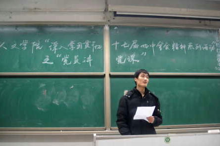 人文学院以学习贯彻十七届四中全会精神为契机,在人文本科第一、二、三学生党支部及模拟党支部中开展“党员讲党课” 活动,为学院党员提供发挥党员作用平台,让广大党员带领积极分子共同学习十七届四中全会相关精神,达到了党员“学习理论出效果,树立形象出标杆”的实效。