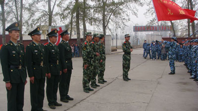 经过简短的前期工作沟通,66081部队同武警北京总队二师第四支队官兵在训练场地现场完成了一对一的责任交接,他们观摩了同学们基础课目的练习,并详细询问了近几天大家训练的内容和整体进度,为有效地开展后续训练打下了良好的基础。