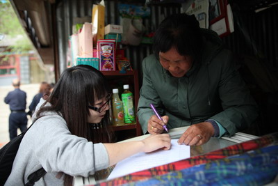随后,支部同学选择景区工作人员和部分当地经商的村民进行了“低碳生活”的问卷调查,调查问卷的内容主要是围绕低碳环保以及低碳在生活中如何体现等方面来展开的。支部同学耐心地给他们解释问卷的内容,帮助他们顺利完成调查,同时为了感谢他们的积极配合,支部还为每个答卷的朋友送上了实用的纪念品。
