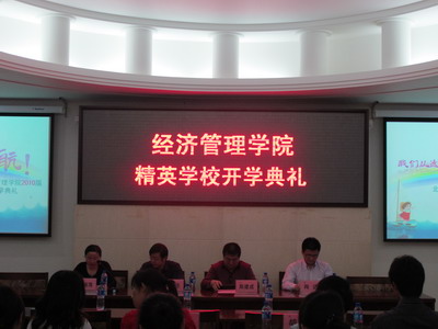 据悉,经济管理学院“精英学校”由经济管理学院党委主办,是面向全院大二、大三优秀本科生招生的人才培训学校。“精英学校”旨在通过对选拔出来的优秀学员进行为期一年的分专题集中教学、创新训练、社会实践、岗位实习等培训,培养思想政治素质好,具有创新精神的高素质、复合型优秀人才。(A19)