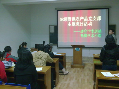研究生部分学生党支部分别举办“加强学术道德建设”、“拒绝学术作弊,从我做起”、《锵锵3人行––院士也造假》等主题座谈会,举例讨论当今社会学术不端的现象,并对如何改进学术风气做了发言。座谈会由报告、视频、讨论三部分组成。与会党员在观看视频、讲述学术造假案例后,对产生学术不端现象的产生原因进行了深入的讨论和剖析,并结合身边一些学术不端的现象发表了自己的看法,最后由支部书记对座谈会进行总结。研植物08党支部则以“遵守学术道德”为主题,结合本支部研究生党员所在专业特点,运用研究生掌握的知识,深入北京市延庆县井庄镇曹碾村基层解决农村实际问题,倡导求真务实的学术氛围以及重视实践的学术精神,为建设北京新农村献计献策。