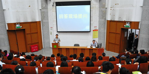 5月19日,经管学院在二教扇形报告厅举行2010年暑期社会实践宣讲动员暨信息发布会,来自全院各个年级的近500名学生参加了发布会。校团委负责人和学院团委相关负责老师出席了发布会。