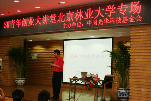 5月24日晚,由中国光华科技基金会主办的“SK青年创业大讲堂––北京林业大学专场”在北林图书馆报告厅举行,讲座讲授人为中青在线首席创业培训师石宝根先生。