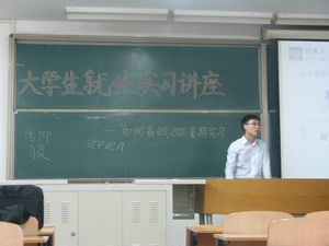 5月28日,理学院举办了一场以“如何备战2010暑期实习”为主题的大学生就业实习讲座。理学院07、08级全体学生参加了本次讲座。