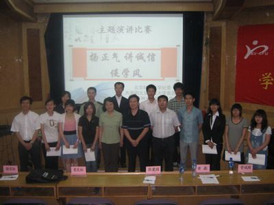 本次比赛紧紧围绕“诚信”展开,“三聚氰胺”,“三鹿奶粉事件”等字眼也频频出现在演讲中,参赛选手将自己的演讲与当今的时事相连接,成为本次比赛的一大亮点,凸显了北林学子的深度和风采。各位同学都有自己独特的演讲主题,“少年强则国强”,“诚信为身,信以为人”,“做时代的酵母,让诚信的面包发酵起来”等具有号召力的语句更是频频将场上的气氛带入高潮。其中还穿插了演唱曲目《国家》给大家营造了轻松而愉悦的气氛。