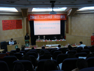 会议选举产生了第三届研究生委员会委员,并提交了《北京林业大学人文社会科学学院第三次研究生代表大会提案报告》,相关负责老师对学生工作和学术研究两方面提案报告进行答复,并宣读了其它职能部门如图书馆、学生公寓、食堂针对提案中涉及的问题的答复。大会还审议并通过《关于聘请人文社会科学学院第三届研究生委员会秘书长的议案》。(A19)