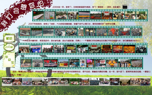 近日,森工楼大厅内橱窗有了新景象,一幅主题为“我们会想你的––献给2010届毕业生”的展示橱窗吸引了不少毕业生的眼球。橱窗分四个板块,选取了2010届毕业生自入校以来,参加开学典礼、入学教育、评优表彰大会、军训及院系杯比赛等一系列活动的场景,照片共计50余张,记录了毕业生的四年成长历程。