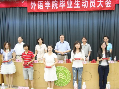 6月23日上午,外语学院在东配楼大报告厅召开2010届毕业生动员大会,庆祝毕业生圆满完成学业,走向工作岗位。外语学院党政领导、教研室主任和毕业班班主任参加了大会。