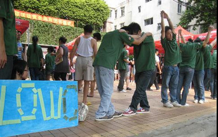 在种子领养环节,志愿者们记录下了领养者的邮箱和联系方式,以便日后提醒;低碳生活常识的展板吸引了过往的居民,生动的图片和文字以最直接的方式传达了低碳的生活方式;华南理工的同学们用身体摆放出了大大的“LOWC”四个字母,寓意“低碳”,引来众人围观;志愿者们还写出了日常生活碳消耗的计算公式,并帮助居民计算家里的碳排放。参与的居民兴趣盎然。