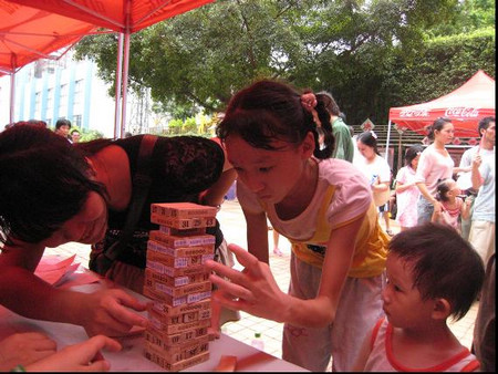 本次活动的五项低碳小游戏是最受居民欢迎的部分,大人小孩都纷纷参与其中,居民每参加一个游戏均得到一次积分,积分累计到一定数目还可以领取相应的奖品。正在排队参加“搬运地球”游戏的杜阿姨说,这样的环保低碳活动还是第一次参加,这种走近社区的宣传方式很有意义,寓教于乐,她很鼓励这样的活动多多开展。环保小游戏都是志愿者们开发才智共同发明的,希望以此增添宣传的娱乐性,吸引更多的居民参加,而贴近环保的设计更是体现了低碳的理念。比如在“环保保龄球”游戏中,所有的“保龄球”均由回收的旧饮料瓶填充了重物做成,环保还富有创意。