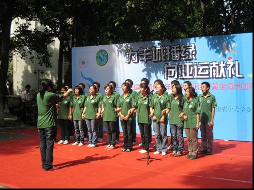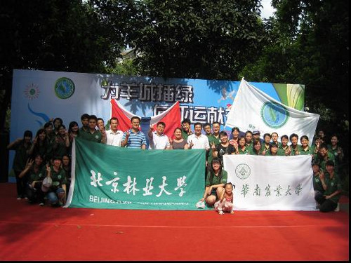 7月11日下午,绿色长征黄金海岸团的启动仪式在广州市天河区五所社区隆重举行。本次黄金海岸团广州主题为:为羊城播绿,向亚运献礼!来自北京林业大学、华南农业大学、富群环境研究院、广东太古可口可乐公司、天河区环保局、天河区五所街道社区的相关负责人出席开幕式,北京、广州两地的绿色长征志愿者以及五所社区居民参加了仪式。
