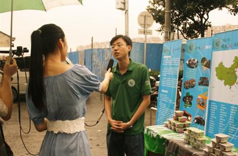 7月11日上午,绿色长征长江之歌上海队志愿者走进上海市张桥菜市场,开展低碳调查宣传活动,鼓励商家及消费者减少塑料袋的使用。此次活动吸引了上海浦东电视台等多家媒体的关注,长江之歌团的领队郭昊老师代表绿色长征主办方接受了采访。