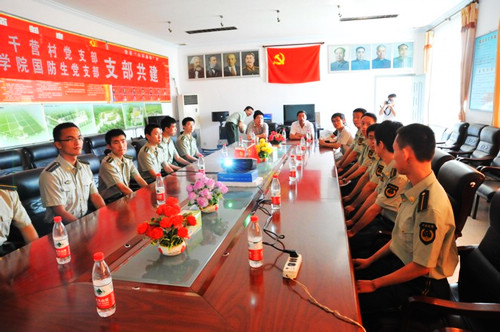 为引导大学生建立到基层农村就业创业的意向,充分提高学生党员志愿服务社会、服务新农村建设的积极性,使学生党员了解农村、服务农村,关注和关心我国新农村建设和生态文明建设,在实践中增长见识、增强本领,8月24日,北京林业大学信息学院国防生党支部的同学们来到延庆县康庄镇刁千营村与刁千营村党支部开展红色“1+1”支部共建活动。