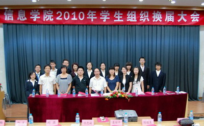 2010年9月11日下午,北京林业大学信息学院2010年学生组织换届大会在东配楼大报告厅隆重召开。校团委、信息院党团委相关负责老师、各兄弟学院团委老师、各院学生会、社联相关负责人出席了此次大会。