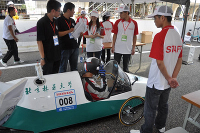 据悉,中国节能车大赛由本田公司主办,要求参赛者使用低能耗摩托车的4冲程发动机,根据自己的想法动手设计、制作赛车,表达节能环保主题。比赛时,组委会向每车发放180ml的98号汽油,通过在28min内完成12.04公里的赛程,根据计算最终每升汽油能完成的距离来评价节能车质量。
