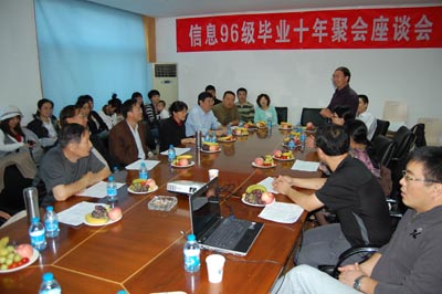 9月22日至24日,我校信息96级学子在母校欢聚一堂。在主楼409,45名信息96级学子与阔别10年的恩师们进行了座谈,共同回忆在校时的美好时光。