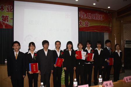 大会对第七届助理团所进行的工作给予肯定,对优秀队员进行表彰。第八届助理团主席从上届主席手中接过会旗后,就未来一年的工作规划进行简要阐述,力争打造“有文化,有品牌,有传承,有影响”的校学生就业助理团。