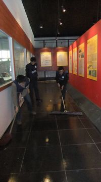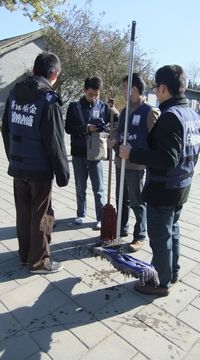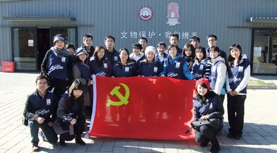 穿着印有“文物保护,我们携手”的志愿者背心,党支部成员分别完成了文物、图片展厅的卫生清理等辅助工作。虽然只是繁重的体力劳动,虽然他们缺乏文物保护的知识背景,虽然他们只是利用课余时间参加志愿者工作,但是他们用认认真真的志愿服务态度诠释了颗颗爱国之心。