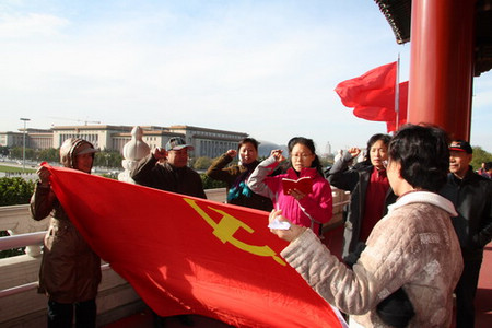 近日,为进一步深化和推进创先争优活动,增强党组织凝聚力,提高党员党性观念,离退休处党委在职党支部在天安门开展了“重温入党誓词坚定理想信念”主题活动。