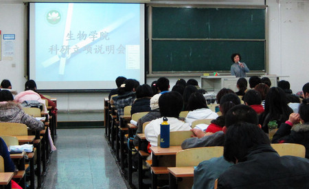 为鼓励和培养学生的实践和创新能力,更好地营造学术氛围,生物学院于12月13日晚七点在二教308召开了“生物科学与技术学院2010年度科研立项说明会”。生物学院副院长郑彩霞及学院有关教师出席了会议,会议邀请了学院科研立项负责人任建武和有着良好经验和成果的同学进行了立项说明和经验分享。