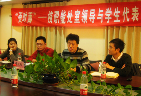 据悉,“面对面”—校职能处室领导与学生代表交流座谈会,是我校学生会为切实代表广大同学利益,维护同学权益而采取的一种维权新形式,此举也得到了我校相关职能部门的大力支持和同学们的热烈欢迎。活动旨在为同学们和学校各个职能处室之间搭建沟通的桥梁,方便同学更好的与学校沟通,维护自身权益,及时解决同学们普遍关注的热点问题,真正做到“面对面,心连心,常沟通,促和谐”,共同为和谐校园的建设出谋划策。目前,此活动已经在饮食服务中心、信息中心和保卫处开展,与其他职能处室的面对面活动也将逐步展开。(A21)