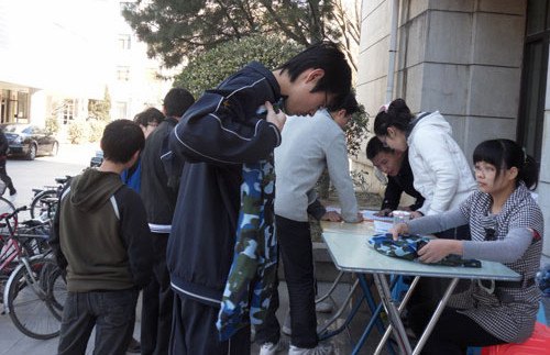 为确保此次活动顺利开展,相关负责人通过班级例会、工学院新闻网、qq群、走访宿舍等多途径地将此次活动进行了宣传,倡导高年级学生转借军训服装,奉献他们的一份爱心。同时学院登记了经济困难学生军训服装需求。活动现场,工作人员将军训服、致10级同学的一封信、借出者的联系卡以及军训结束后写有借取者感激的卡片一同装袋,搭建了高低年级学生之间的沟通桥梁,增进新老生间的友谊。其中一位来自机械专业的大二学生笑着说:“军训服只有在军训和金工实习时用过两次,现在拿出来借给需要帮助的低年级师弟师妹,是力所能及的事情,即能帮助家庭经济困难学生解决实际问题,又是合理利用资源的表现,现在不是流行低碳生活嘛!能够帮助别人,我自己也很高兴。”据悉,本次活动中所转借的军训服将于四月末由大一学生清洗干净后归还给高年级学生。