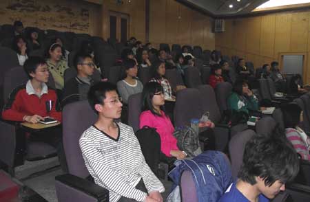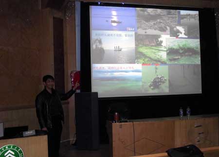 张志翔教授针对环境问题,从生物多样性锐减根源于环境破坏这一问题展开,从“美丽的生态家园”,“不容忽视的环境问题”,以及“生物多样性保护—极小群种野生植物”等三个方面向同学们剖析了我国环境破坏的严重性。他呼吁同学积极贯彻学校“知山之水,树木树人”的绿色理念,倡议同学亲近自然,热爱自然,保护自然。他说,作为北林学子,不但要从自己和身边的小事做起,更要努力带动身边的人。