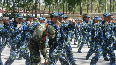 军体拳是由拳打、脚踢、摔打、夺刀、夺枪等格斗动作组合而成的一种拳术。动作精练,节奏分明。初学军体拳,对于毫无基础的同学们而言,无疑是一个挑战。虽然目前大家姿势还不够标准,动作也不很连贯,但依然意志坚定,头顶烈日,一遍遍地练习,休息间隙还不忘互相纠正动作,共同揣摩技术要领。相信凭借着这种不屈不挠的精神,在未来的几天中,他们定能不断提高完善,打出最精炼的军体拳!