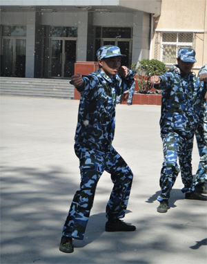 军训的日子就像上了发条的时钟,不知不觉已经走过了四天。疲惫交织着快乐,汗水伴随着歌声,在这里我们拥有共同的着装,拥有共同的动作,拥有共同的生活,因为在这里我们是一个集体!