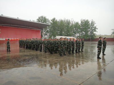 21日上午,北京出现了降雨天气,气温大幅下降。但是,我校国防生丝毫未受到风雨的影响,在寒冷的天气里坚持训练。