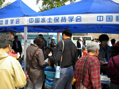 科普活动现场,中国水土保持学会展出了“山地灾害防灾减灾科普知识”展板,聘请了防灾减灾专家进入现场咨询,并发放了上千册宣传画册。“山地灾害防灾减灾知识”共展出10张展板,展出的基本内容包括山地灾害的类型,如滑坡、崩塌和泥石流,各种灾害类型的危害、危险区的划分和确定、灾害的监测和报警、临灾避难措施、山地灾害治理工程措施、山地灾害减灾与新农村建设等。目的是让社会公众了解什么是山地灾害,山地灾害同地震、海啸、台风等自然灾害一样,危害非常严重,但人类可以通过掌握一定的基本知识来判断灾害的到来,通过科学的防灾避难措施来躲避灾难的降临。