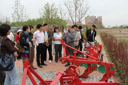 参观活动中,苗圃负责人郝建华详细介绍了我校苗圃和树木园的建设过程、生产模式以及发展规划,并带领老师们参观了苗圃现有的拖拉机、机械手等设备设施,演示了苗圃机械化作业情况。工学院机械专业负责人向老师们介绍了前期与苗圃合作开发除草机械等事宜,并鼓励教师将工学院的科研工作带进苗圃,与学校共同建设现代化苗圃实验基地。