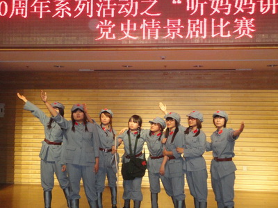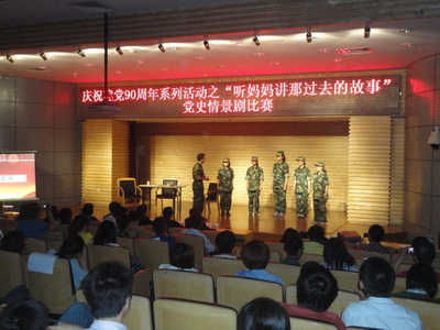 5月13日,庆祝建党90周年系列活动之“听妈妈讲那过去的故事”党史情景剧大赛决赛在我校图书馆五层报告厅举行。《房不胜防》、《闲人马大姐》编剧査慕春、中国人民大学中共党史系魏建克、中国戏曲学院导演系罗静文、中央民族大学音乐学院朱瑞杰和中央民族大学成教影视学院白阳担任此次决赛的评委。到场的还有各学院的团委老师。