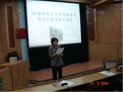 为深入学习杨善洲同志的先进事迹,弘扬新风正气,推进创先争优活动的深入开展,5月20日下午,外语学院党委组织召开了一场别开生面的 “学习杨善洲同志先进事迹汇报会”,全体师生党员参加了本次汇报会。