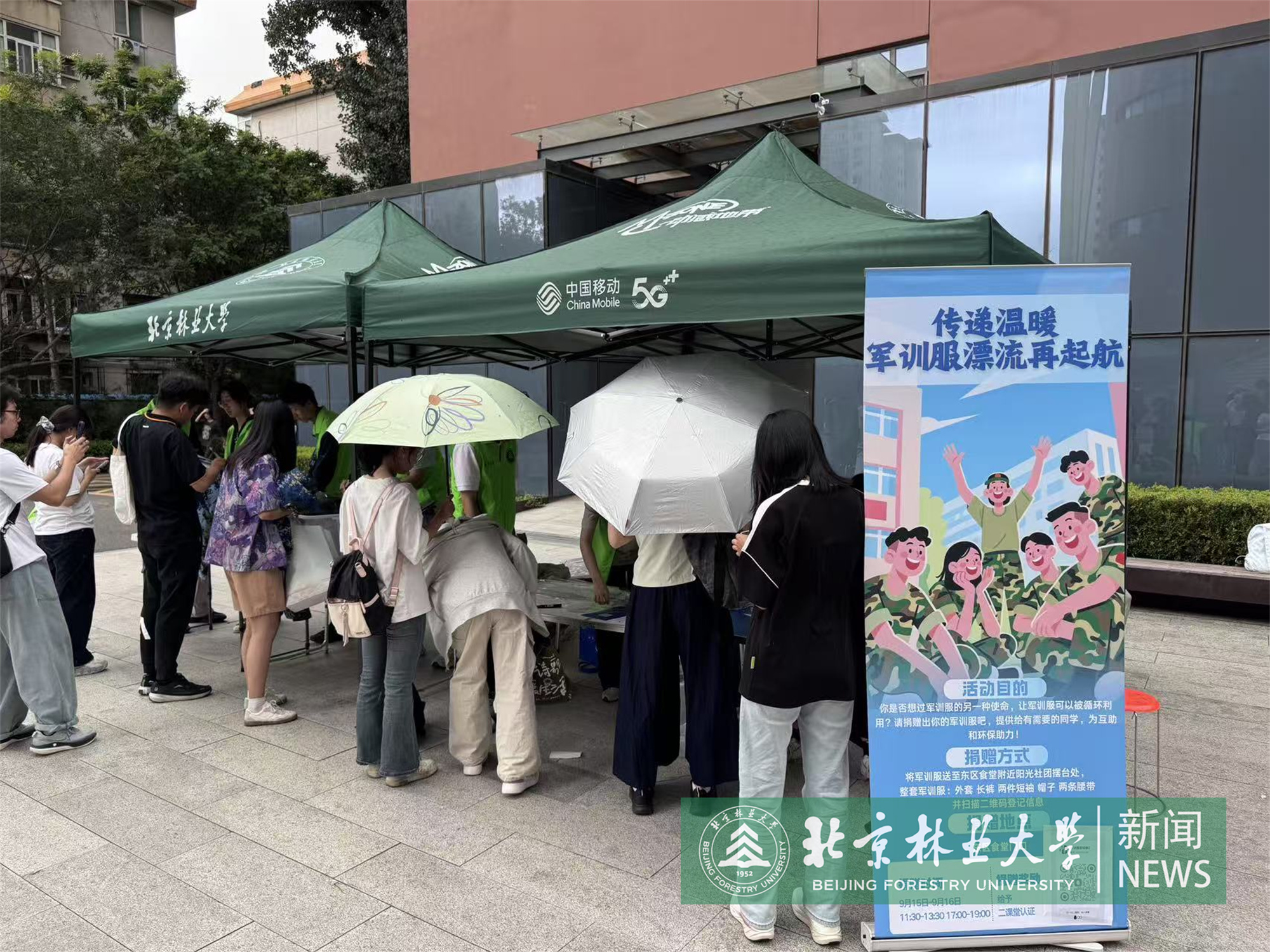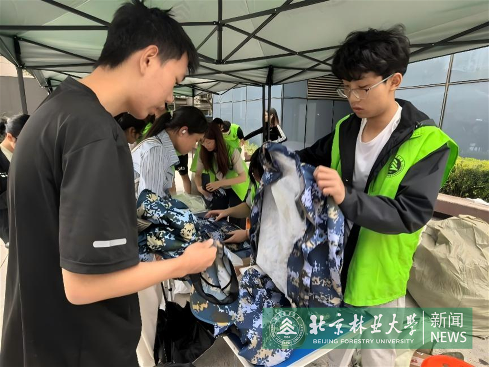 青春力量,汇聚爱心源泉。活动前期,学工部精心指导阳光社团筹备相关事宜,招募工作志愿者并在东区食堂楼下设立回收点。活动过程中突降暴雨也未能浇灭同学们的热情,大家踊跃参与捐赠,帐篷前一度排起长队。清点、分类、折叠、打包……工作人员们用辛勤的汗水,将一份份爱心汇聚成河。参与捐赠的园林学院2025级新生张元森同学说:“一想到我们的军训服能再次穿在有需要的人身上,继续发挥作用,就觉得特别有意义。”工作人员杨雯丽同学表示:“我们的职责之一就是细致检查衣物口袋,以免同学们的私人物品如饭卡、钥匙等装入收纳袋,避免后续还需找回遗失物品,保障活动高效有序。”当迷彩蓝与志愿绿相互映衬,井然有序的捐赠现场和志愿者们忙碌的身影,正生动诠释着北林学子的奉献精神和责任担当。