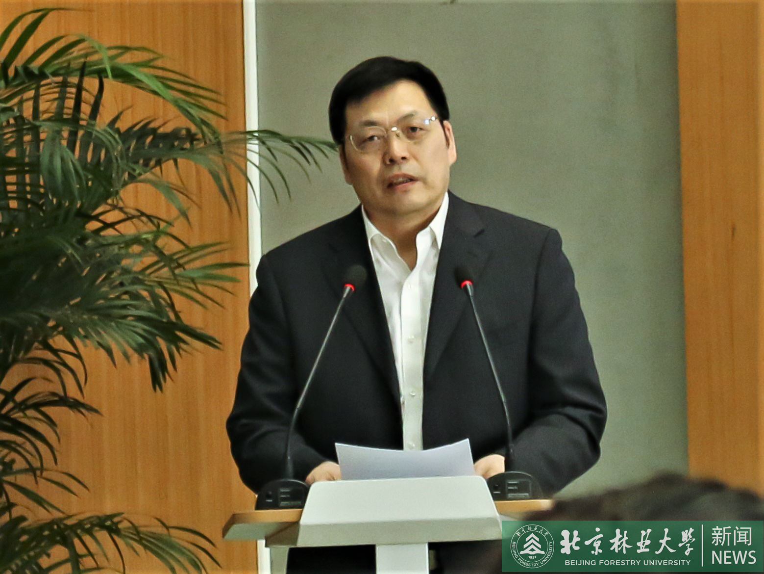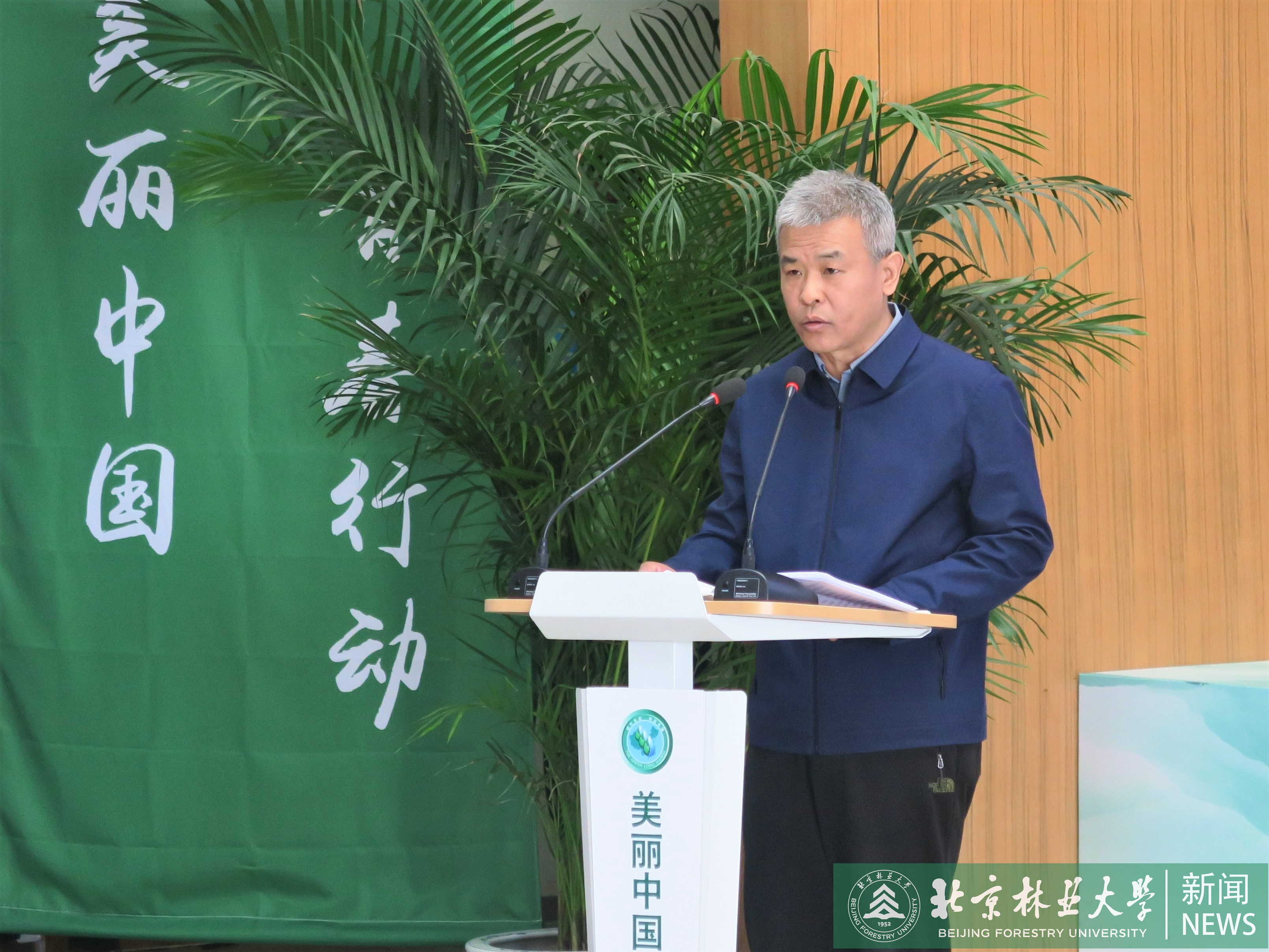 会上,国家林业和草原局宣传中心副主任杨波肯定了北京林业大学在高层次绿色人才培养以及提升青年学生生态素养方面做出的积极贡献。他指出,要积极贯彻落实习近平总书记等中央领导对林草工作的重要指示批示精神,坚持以习近平生态文明思想为指引,紧紧抓住加快建设生态文明和美丽中国的有利契机,牢固树立“绿水青山就是金山银山”理念,统筹推进山水林田湖草沙一体化保护和系统治理,着力推进林草领域的重大改革,主动服务党和国家事业全局。同时,他对广大青年提出了三点希望:一是希望大家积极传播生态文明理念,深化生态文明教育;二是希望大家积极参与绿色志愿服务,带动绿色发展;三是希望大家弘扬生态价值观念,积极投身美丽中国建设。