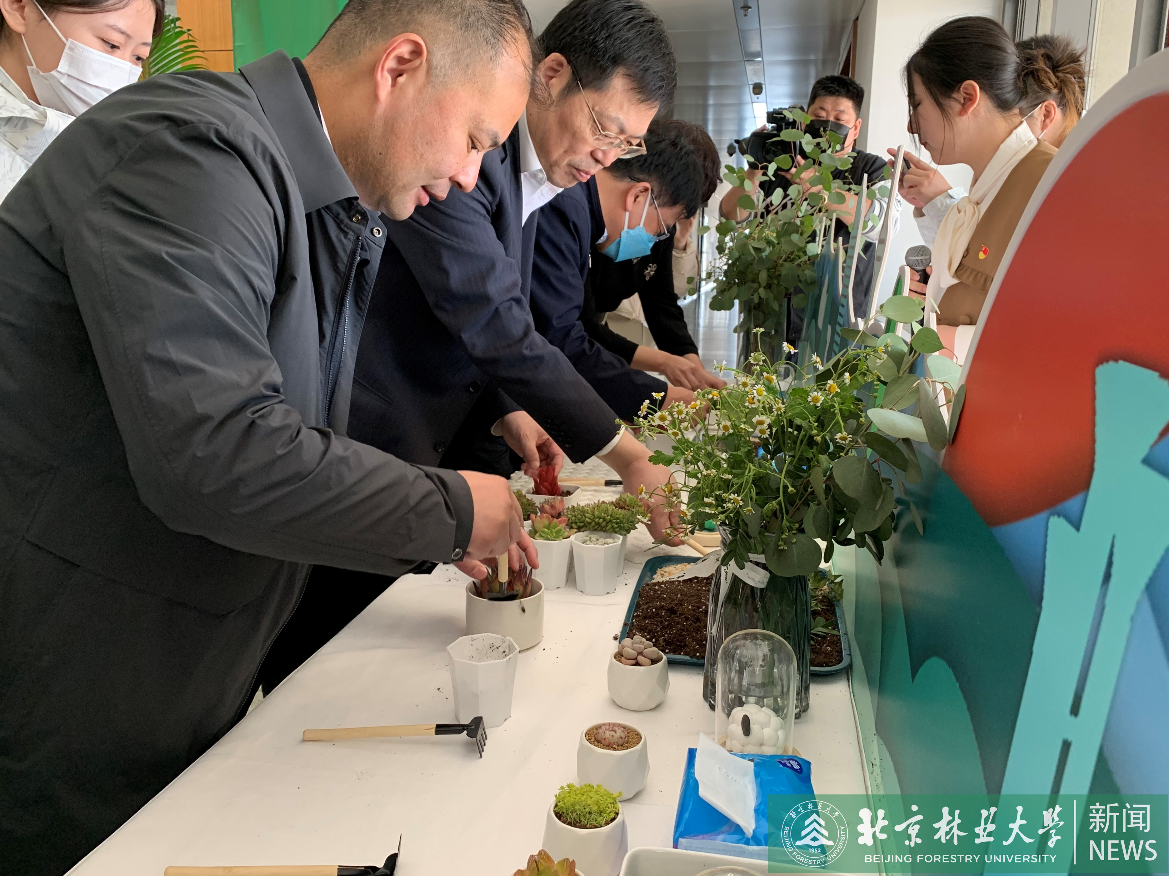 时值第38个首都义务植树日,与会领导嘉宾会后前往绿色种植体验区,一同参与绿植领养互动、环保手工制作,共同传递植绿护绿的美好心意。当天下午,首都青年志愿者积极响应习近平总书记号召,前往通州区张家湾公园园艺驿站第18次开展首都大学生青春志愿林义务植树活动。