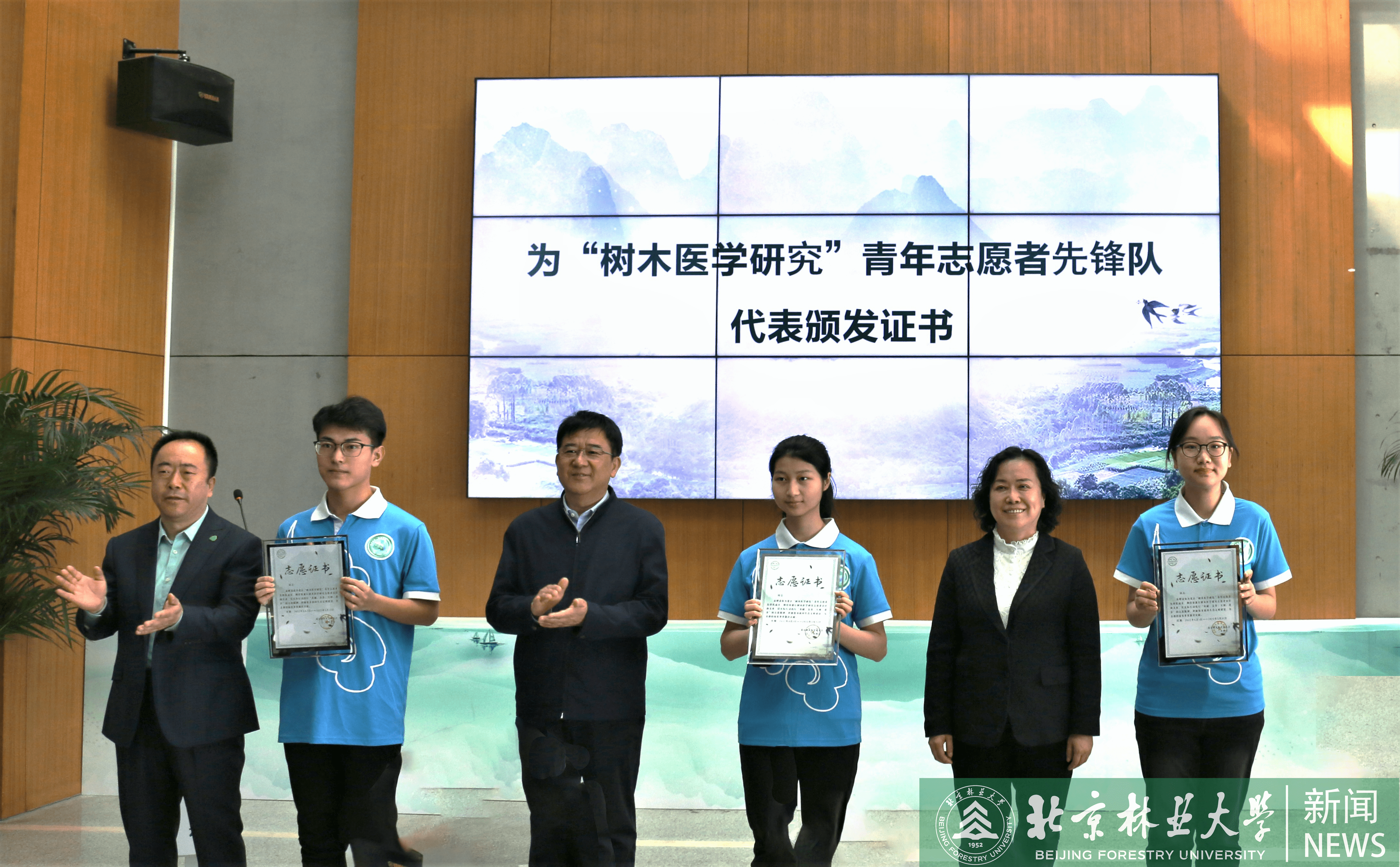 为搭建树木医学研究的学习、交流、实践平台,北京树木医学研究会联合相关单位组建“树木医学研究”青年志愿者先锋队,首批先锋队由中国农业大学、北京林业大学、中国林业科学院、北京农学院等相关高校及单位共同组建。会上为首批“树木医学研究”志愿者先锋队代表颁发了志愿证书。