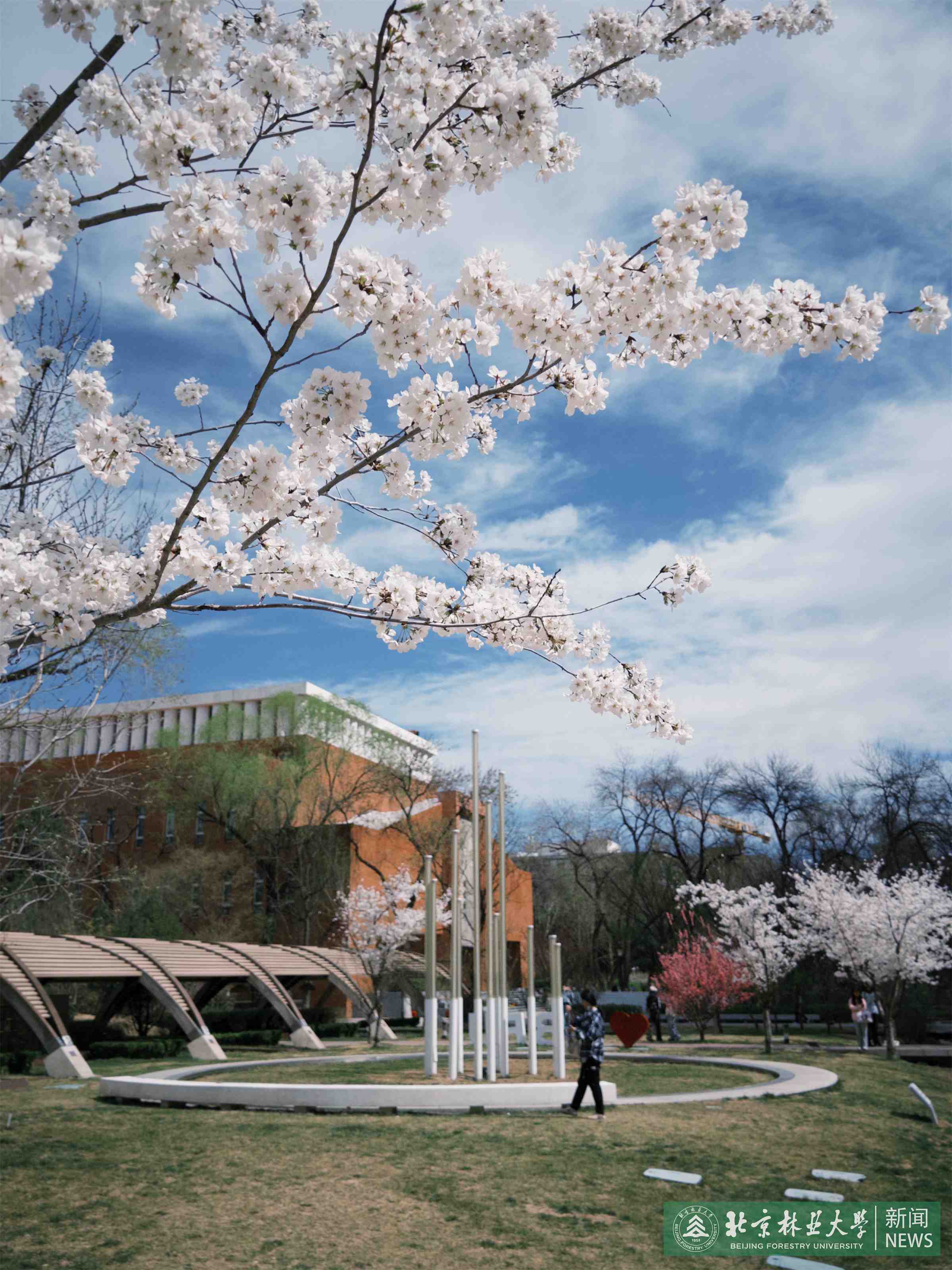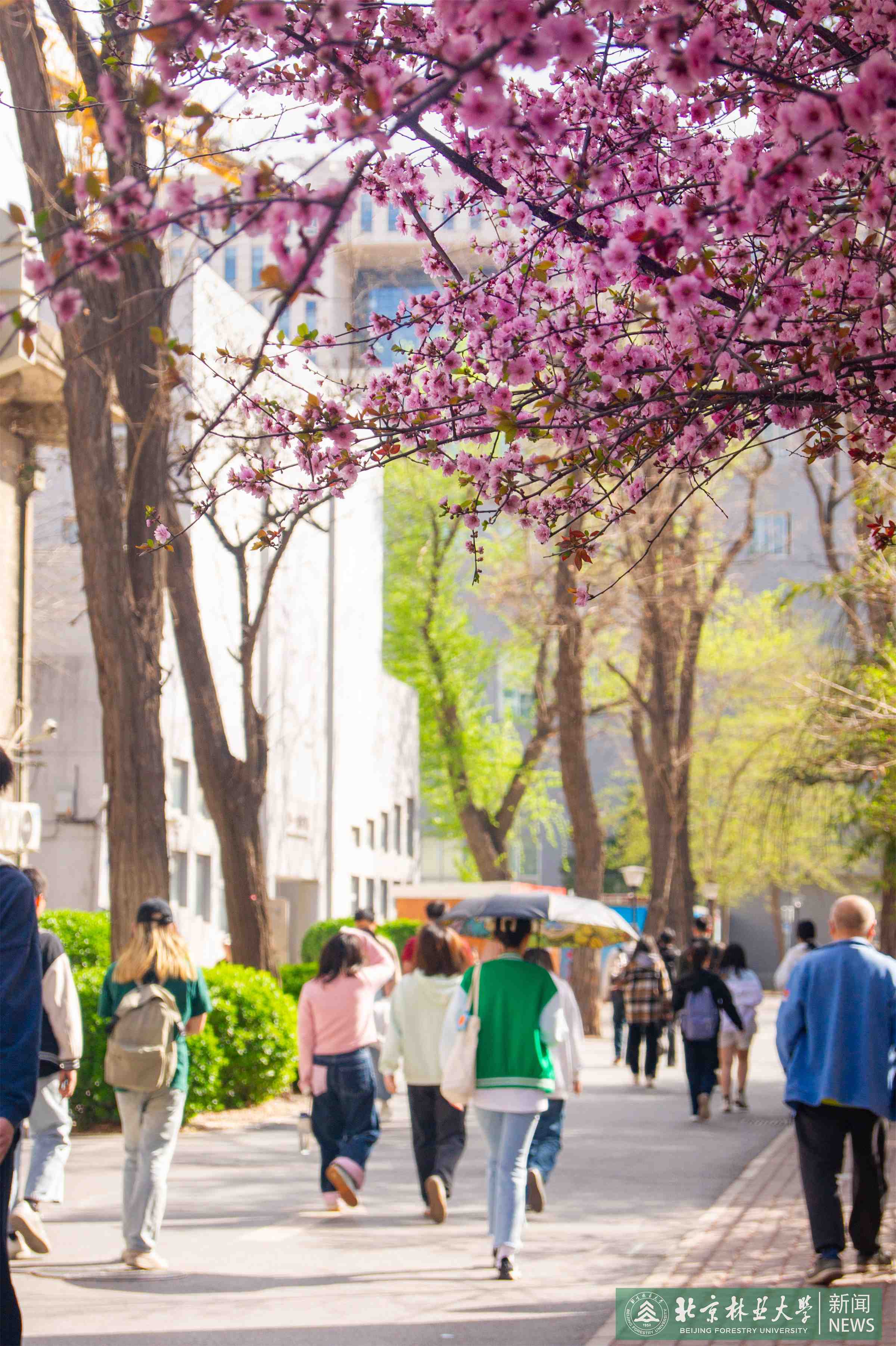 北林的春日,是风与花交织的画卷。浅粉与素白相映成趣,新生的草芽顶破泥土,柔嫩的枝条在阳光下舒展。大地正以最热烈的姿态,将积蓄一冬的心事,轻轻说与春风听。
