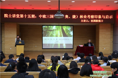 绿色新闻网报道 11月18日,中国工程院原副院长、我校原校长沈国舫院士做客第十五期院士讲堂,为200余名研究生做了一场题为“中欧三国(瑞、奥、捷)林业考察印象与启示”特邀报告。