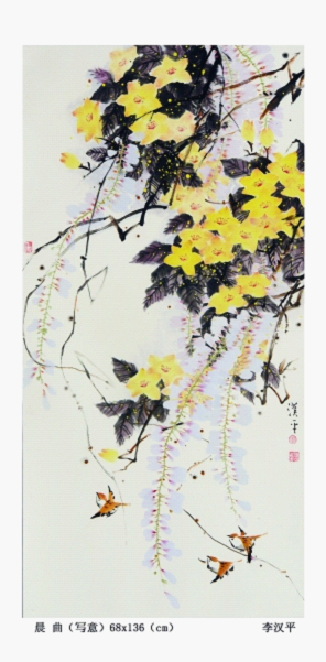 李汉平是一个成熟的花鸟画家,在工笔花鸟和写意花鸟上均有很高的造诣。从其作品中可以看出,他在表现技法、着色、用笔、用墨、绘画材质的选择与使用上都下了较大的功夫。他在作品中表现出了较为全面的造型能力、深厚的传统研究能力、准确的观察生活与表现生活的写生能力,这些扎实的功夫为他的花鸟画创作提供了坚实的基础。